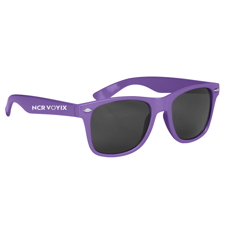 Go outside in style in the Malibu styled sunglasses. UV400 Lenses Provide 100% UVA And UVB Protection; Purple with the NCR VOYIX logo in white on the right temple