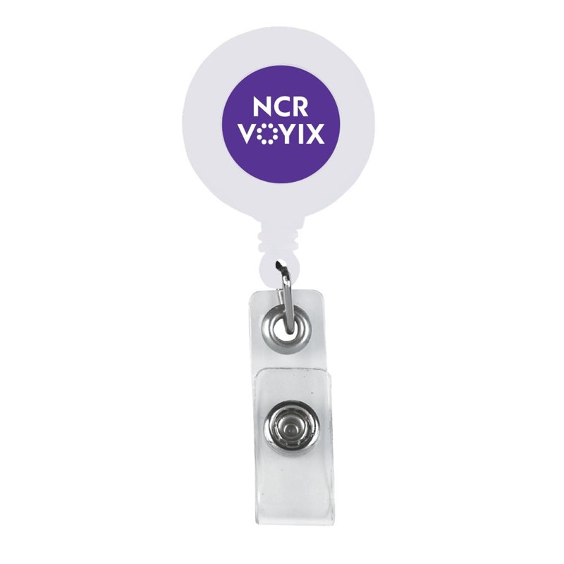 35" retractable cord with a belt clip keeps your badge handy and easily accessible. Printed with the NCR Voyix logo in white.