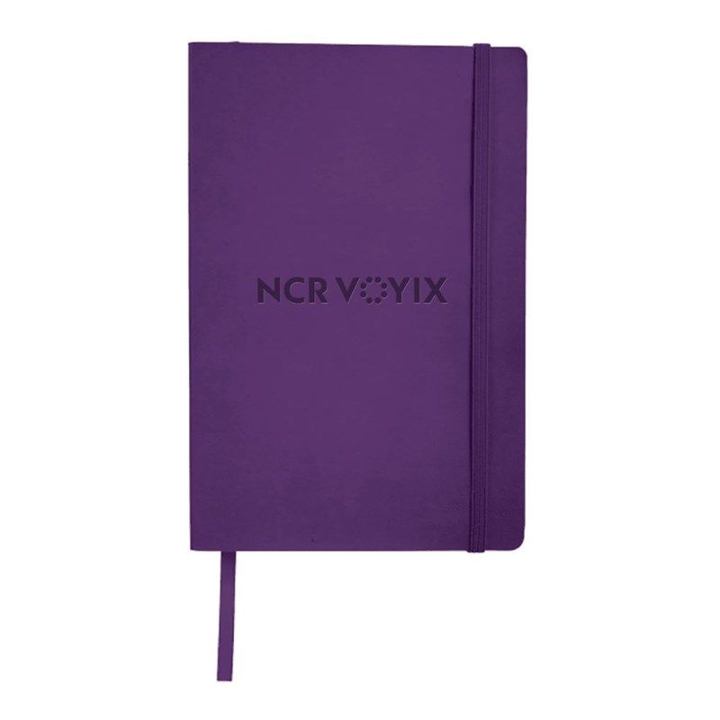 The FSC® Mix Pedova™ Soft Bound JournalBook® features a flexible cover made from luxurious Italian UltraHyde materials. It closes using a built-in elastic band and opens to reveal 80 sheets of FSC® Mix lined paper, perfect for note-taking, list-making, jotting down ideas and more. This compact 8.0" H x 5.5" W notebook contains a convenient built-in page marker and features a document pocket inside its interior back cover. NCR Voyix logo debossed on the front cover.